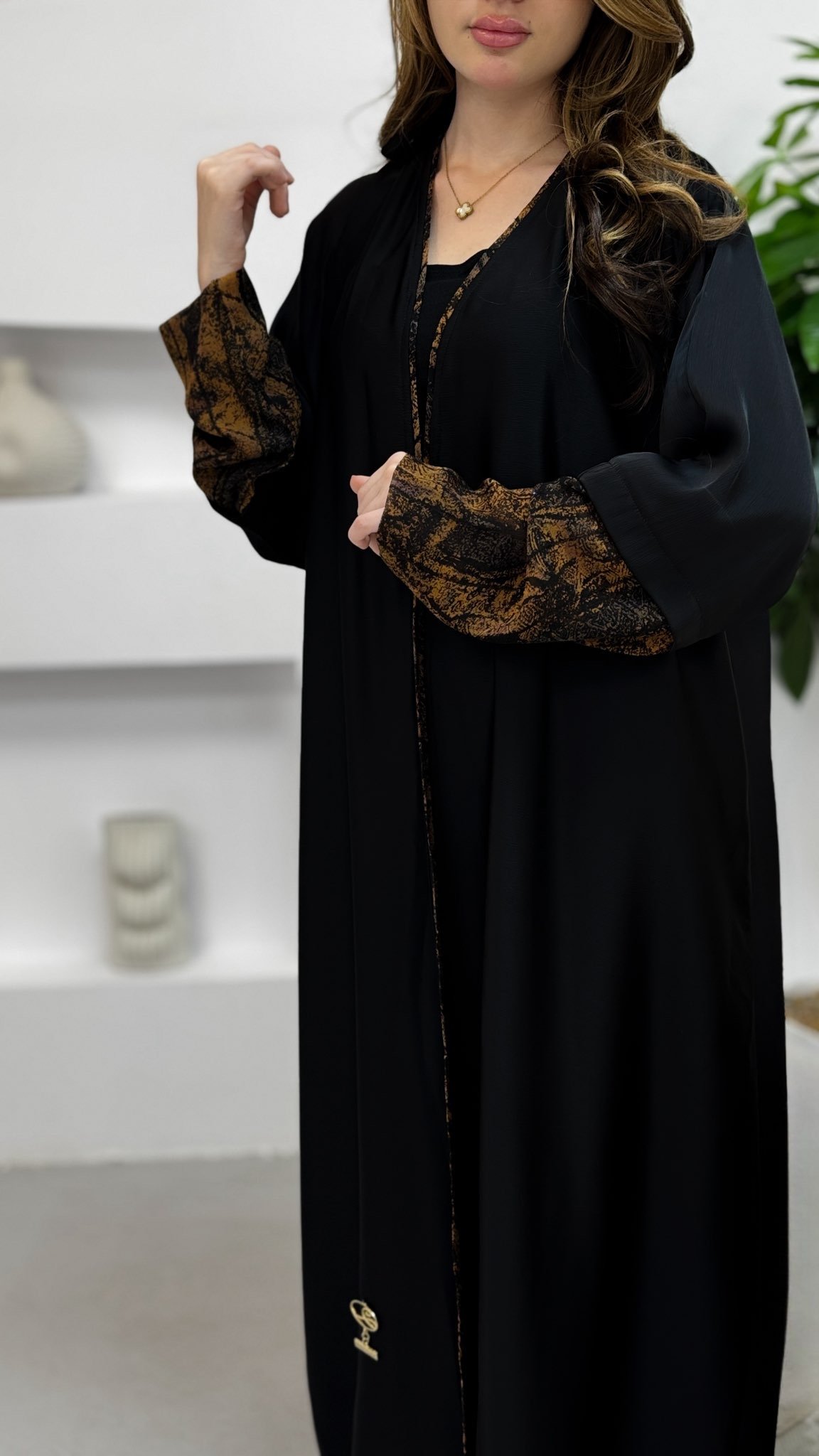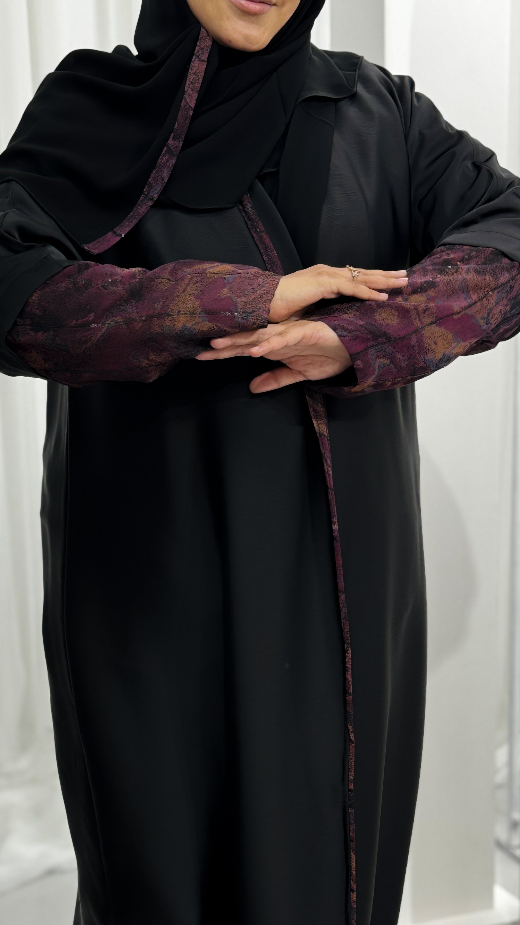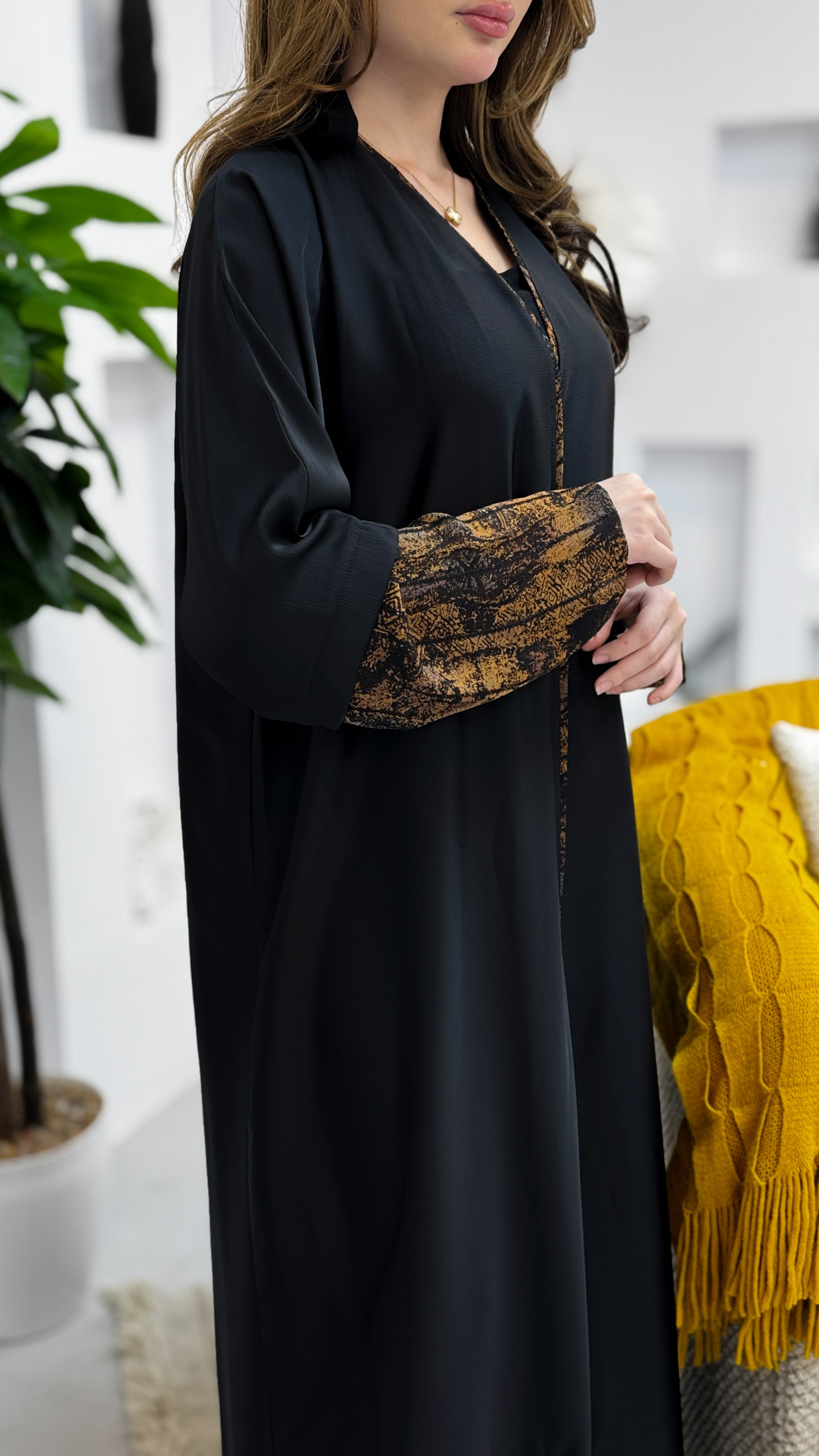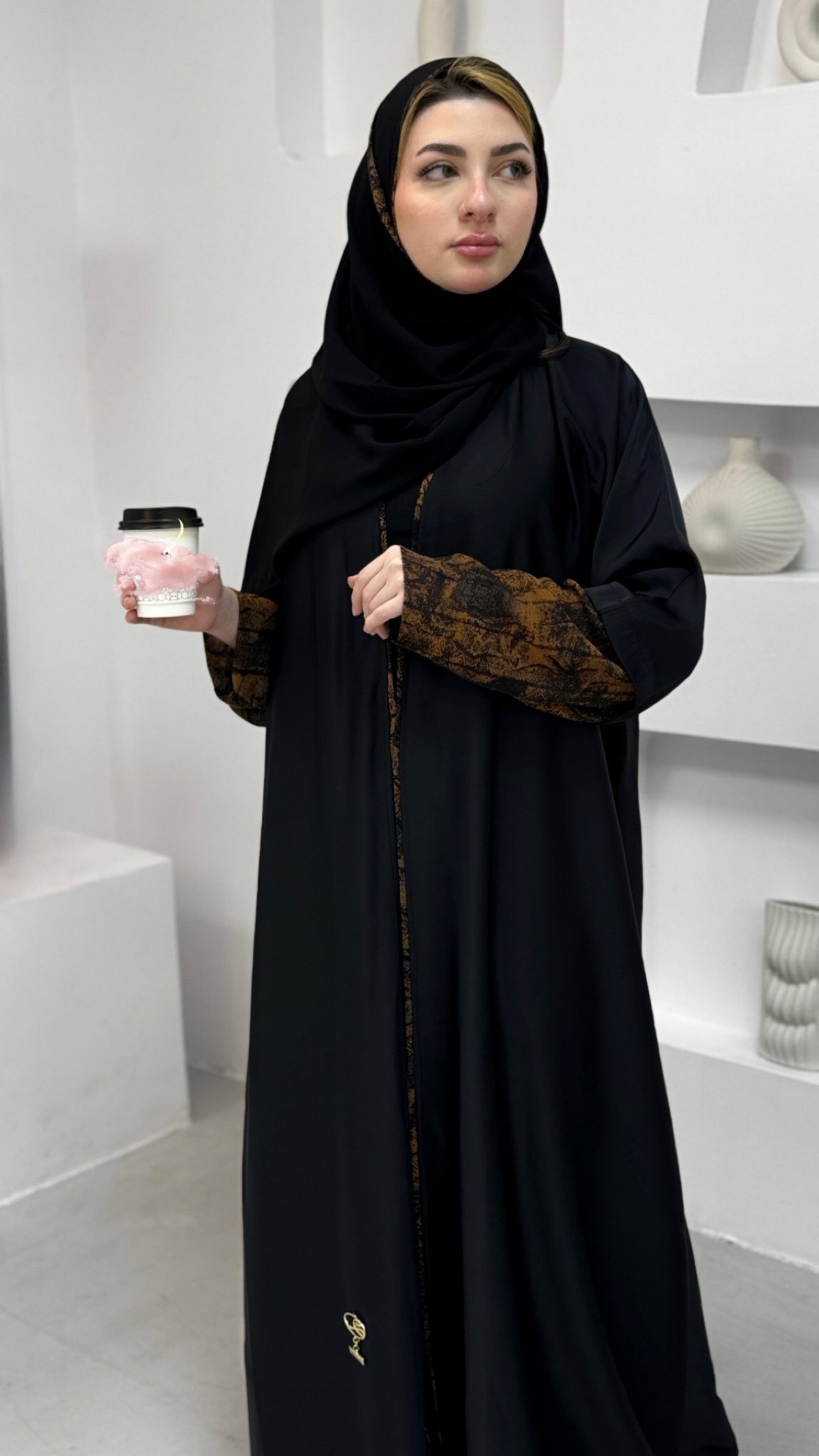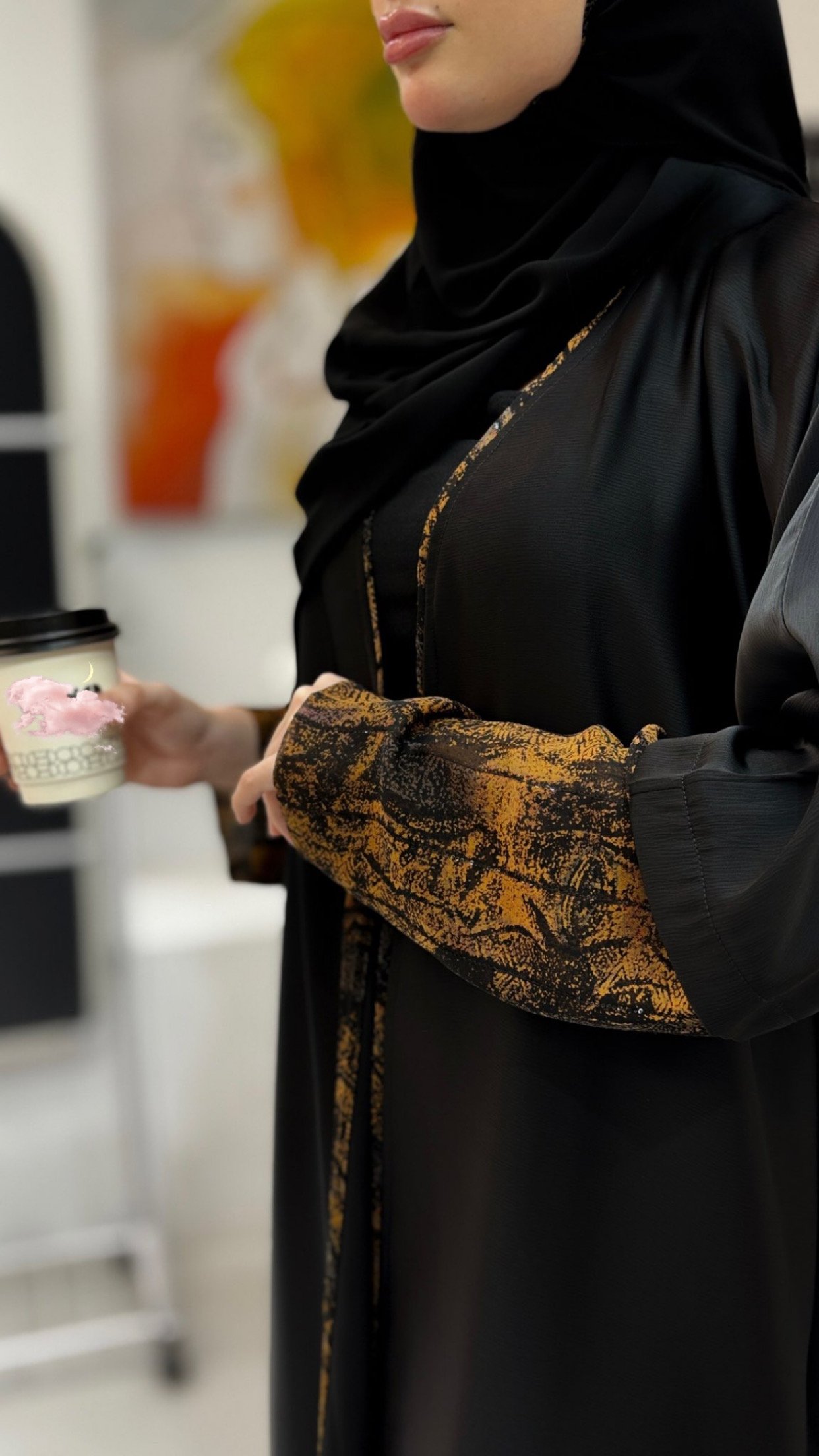 عباية موج من قماش تيك توك الناعم جدا على الجسم نعومته وتمويجاته وسلاسلة خيوطه تسمح بتهوية جيدة ليكون مناسب ايضا في الاجواء الحارة وبه لمعة بسيطة بكم شيفون مطرز بترتر اسود بسيط وناعم ايضاً عباية مناسبة لدوامك كامراءة انيقة متجددة تبحث عن التألق والتميز