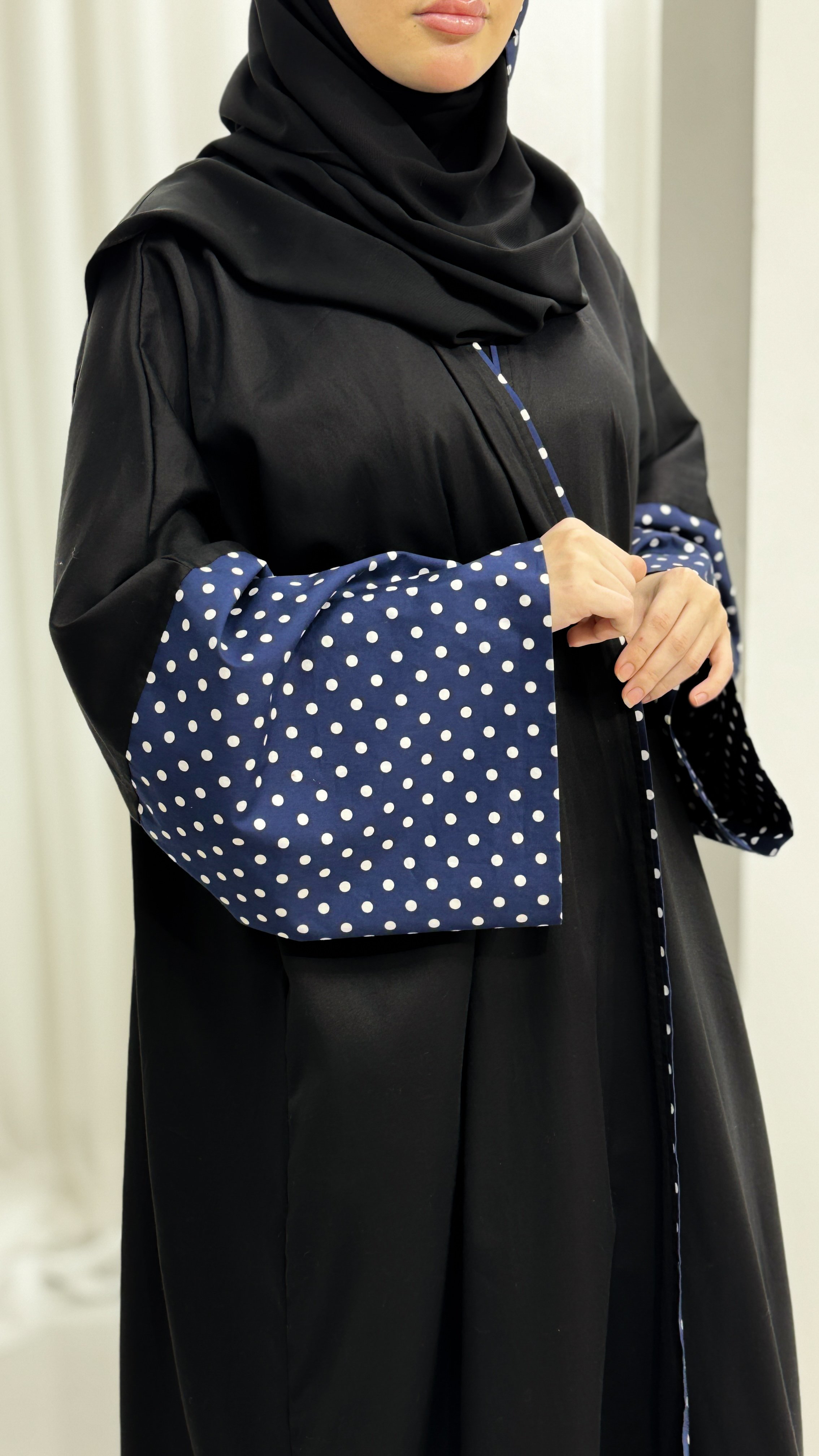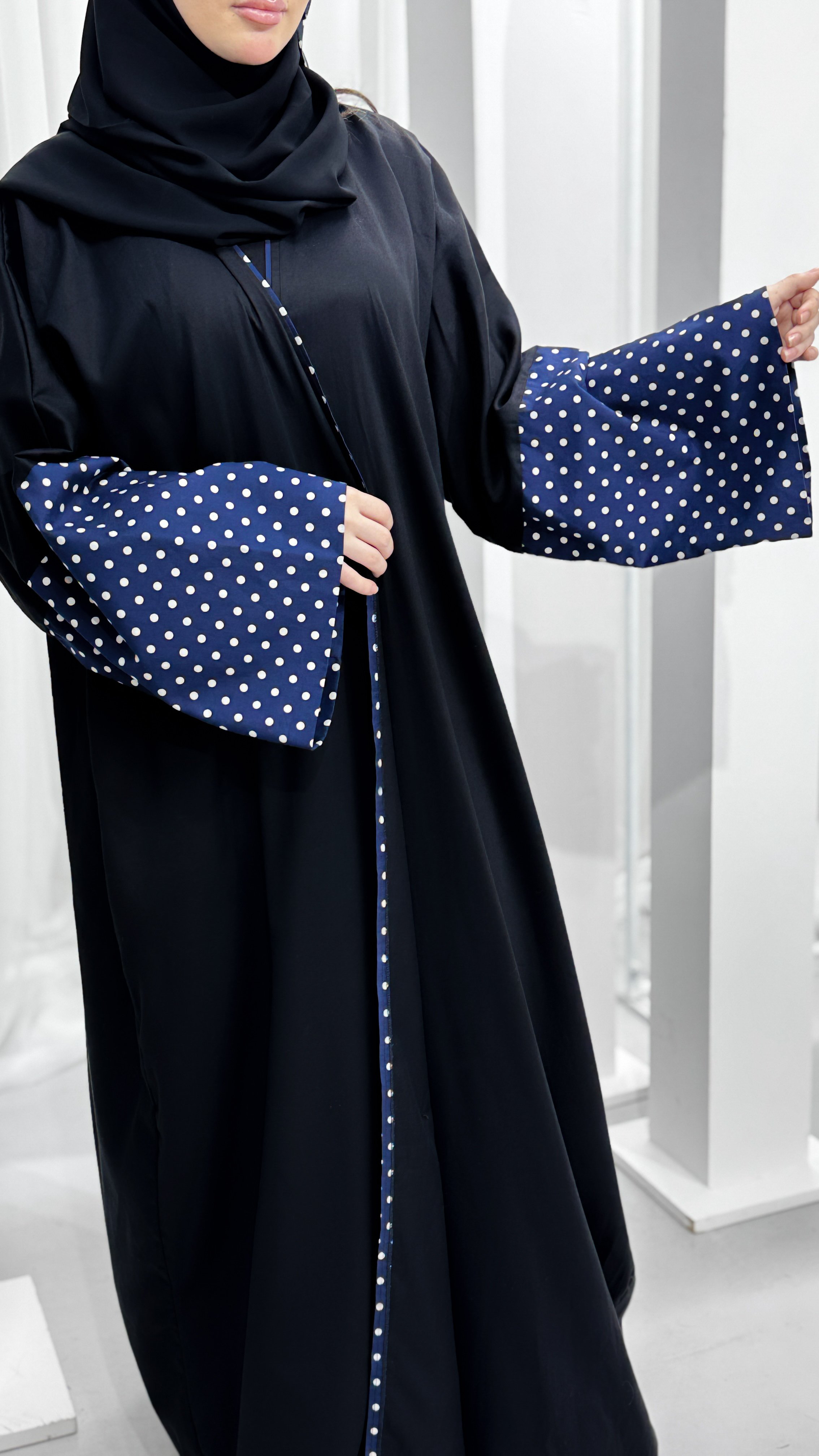 - اللون: أسود بكم كحلي منقط بالأبيض