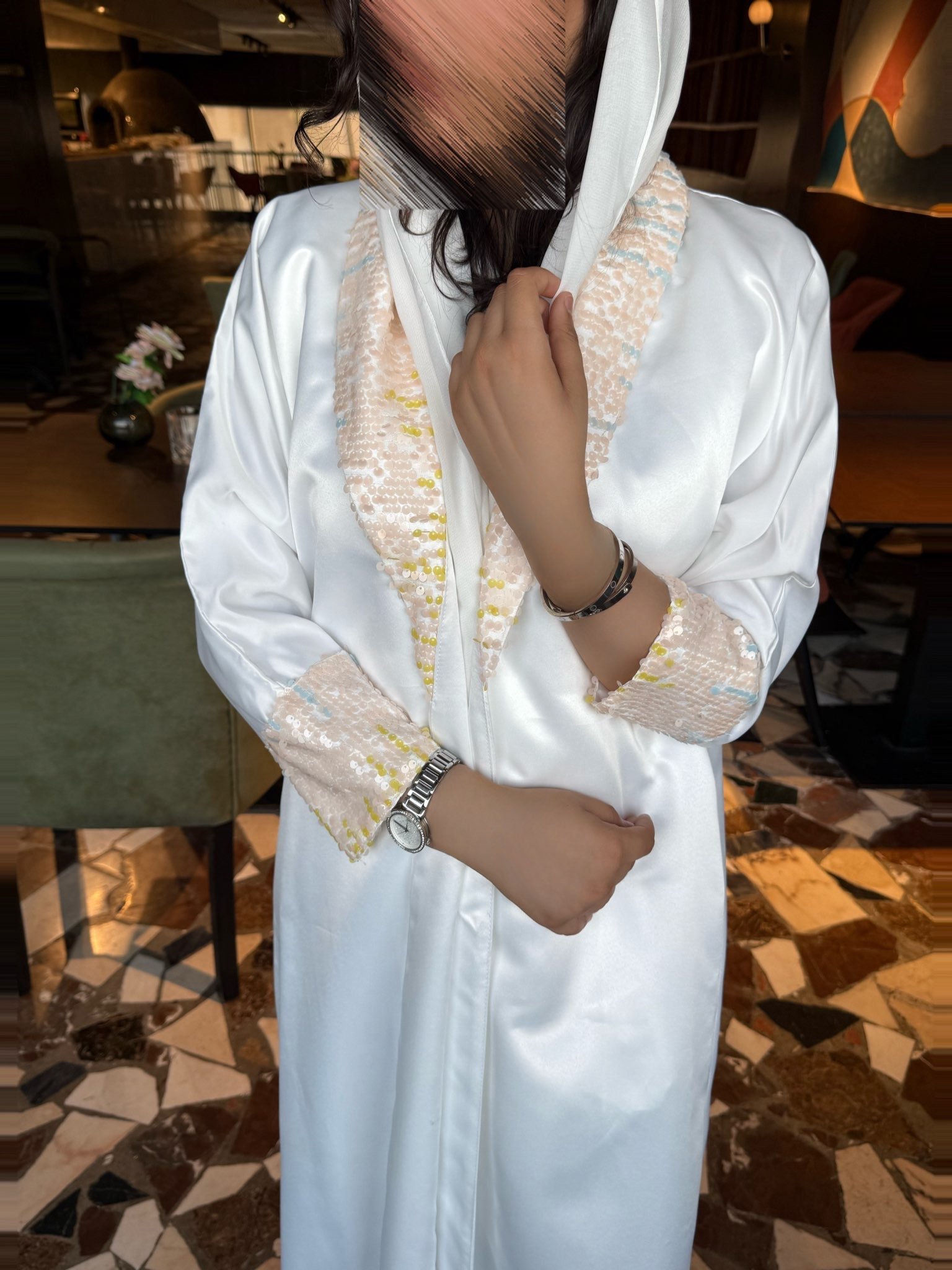 - التفاصيل: تطريز ترتر على الياقة والأكمام