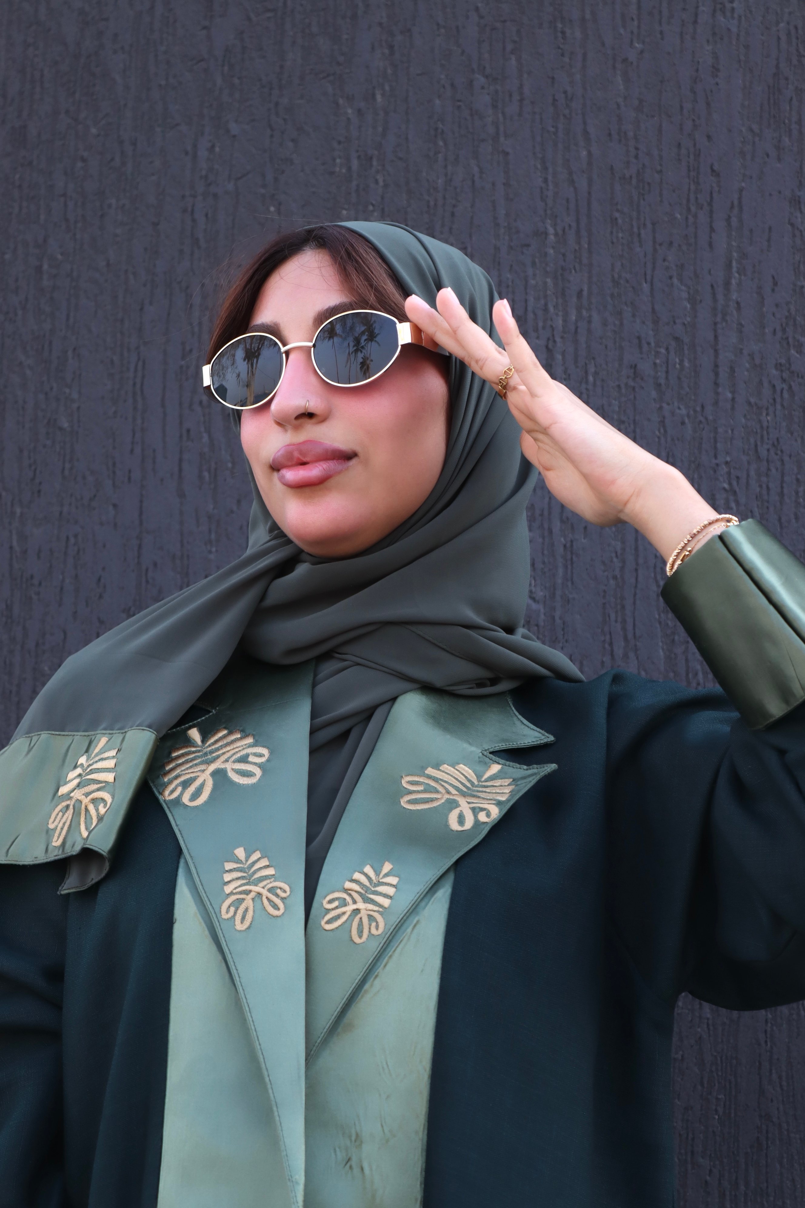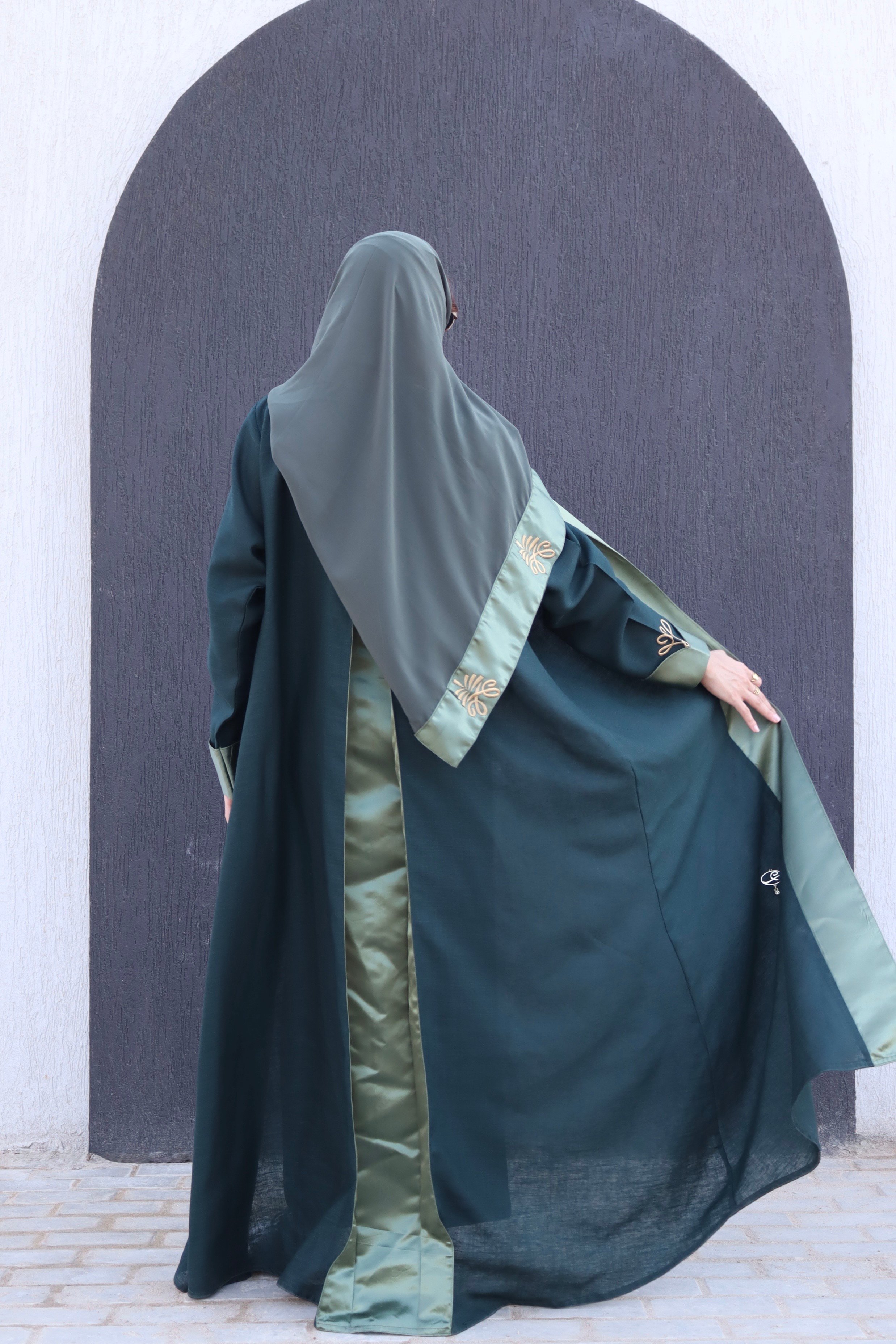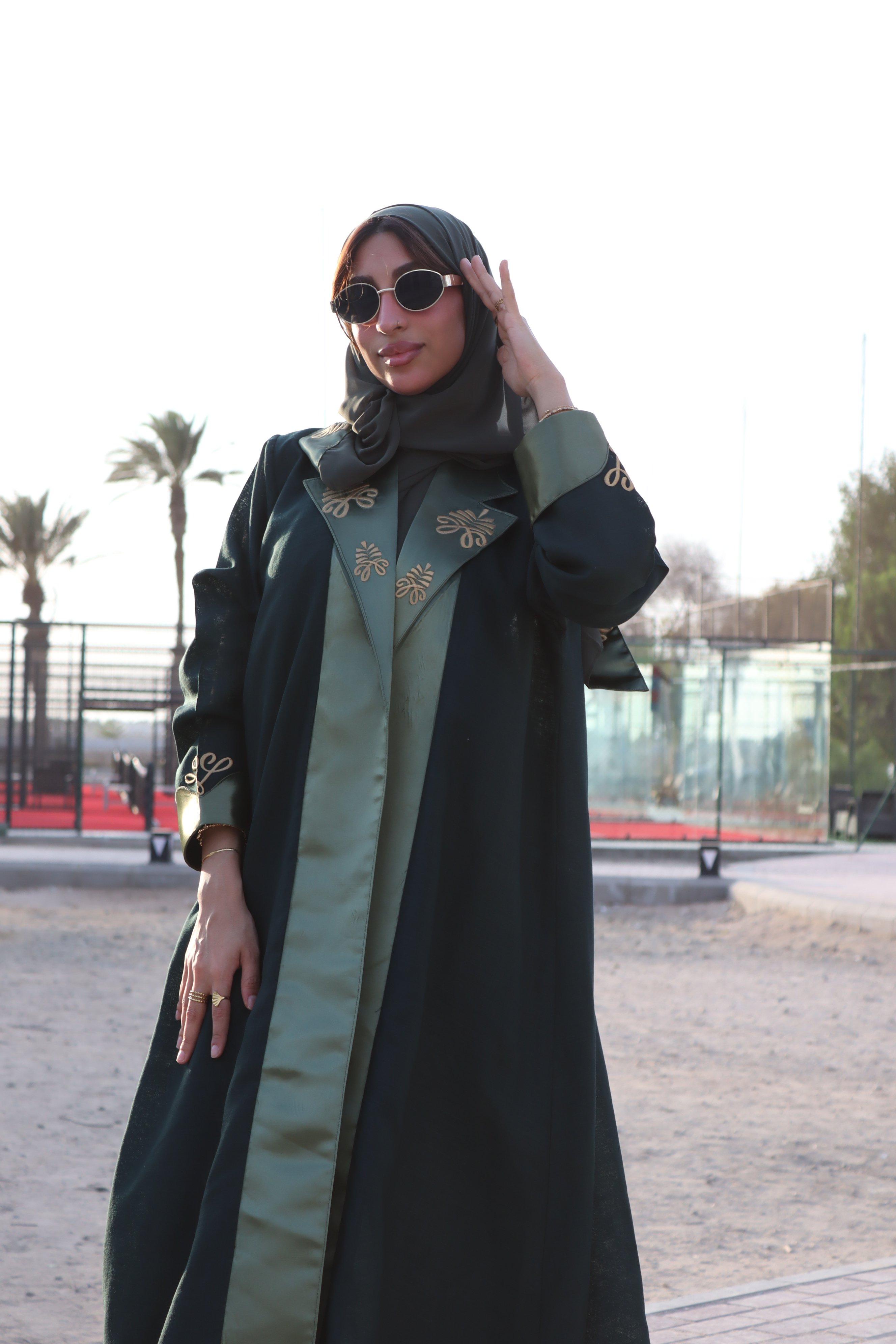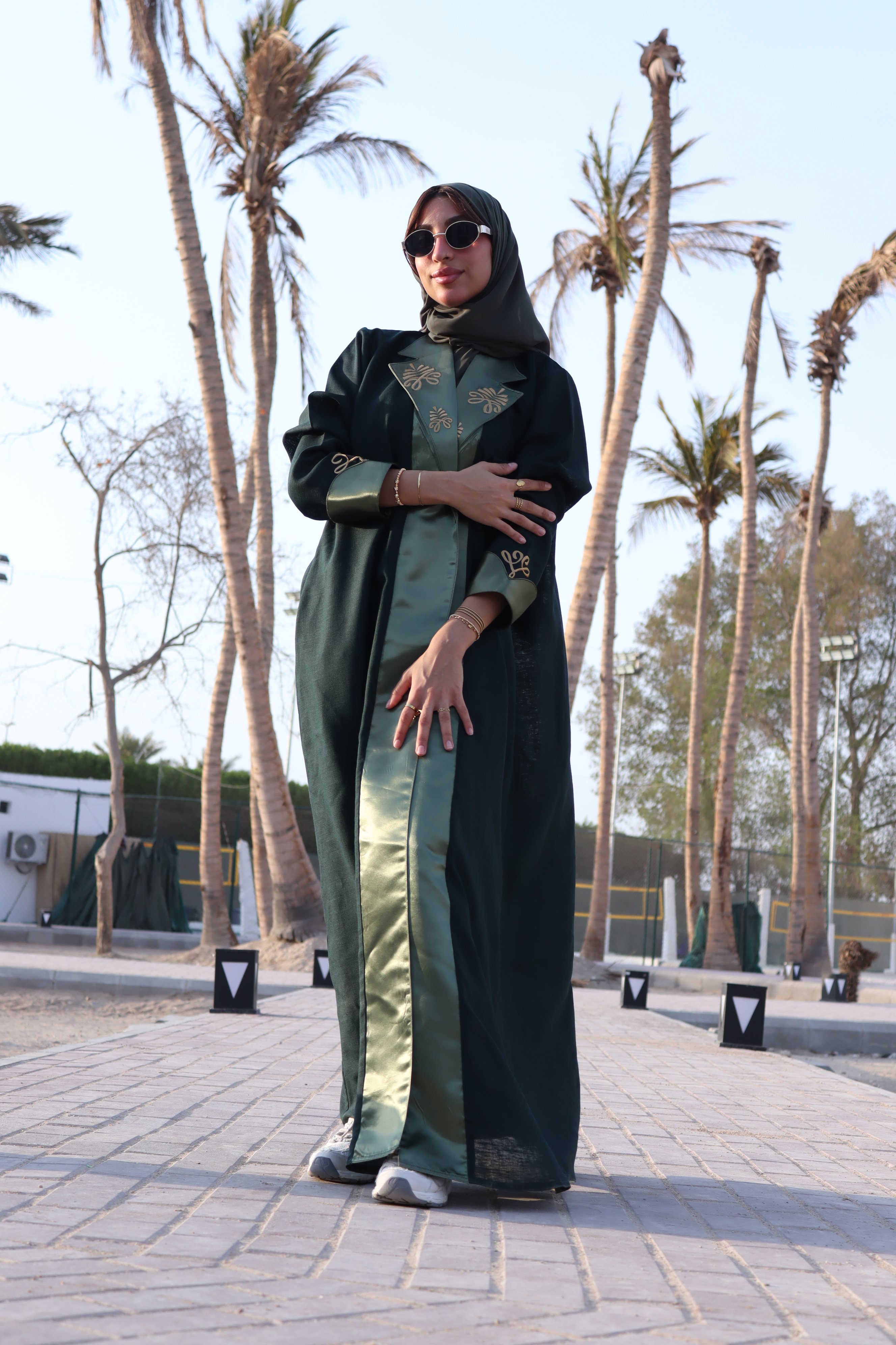 عبايه سعودي أنيقة تحتفي بالهوية السعودية، مستوحاة من رمزية عين الوطن وشعار النخلة لتعكس أناقة المرأة السعودية وقوتها بثقة عالية. مصممة بلونين متناسقين وتفاصيل تطريز فاخرة تضيف طابعاً وطنياً راقياً، مثالية لليوم الوطني وكل المناسبات.