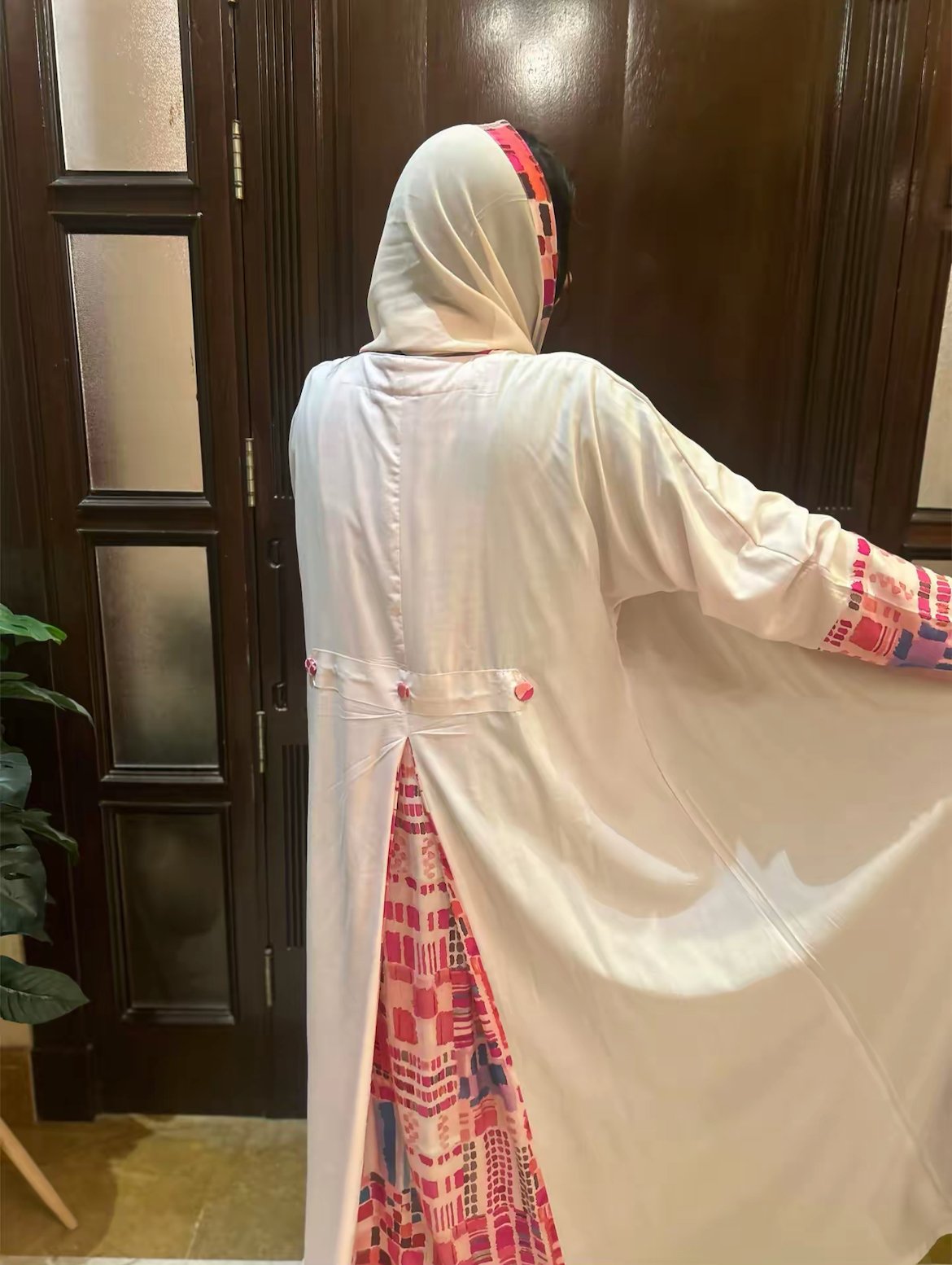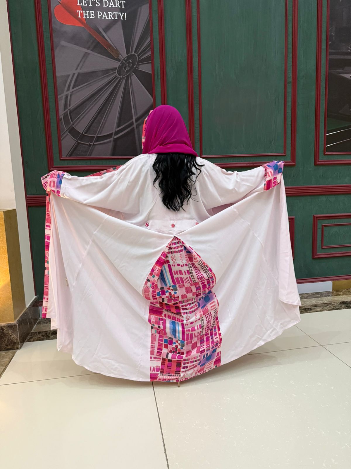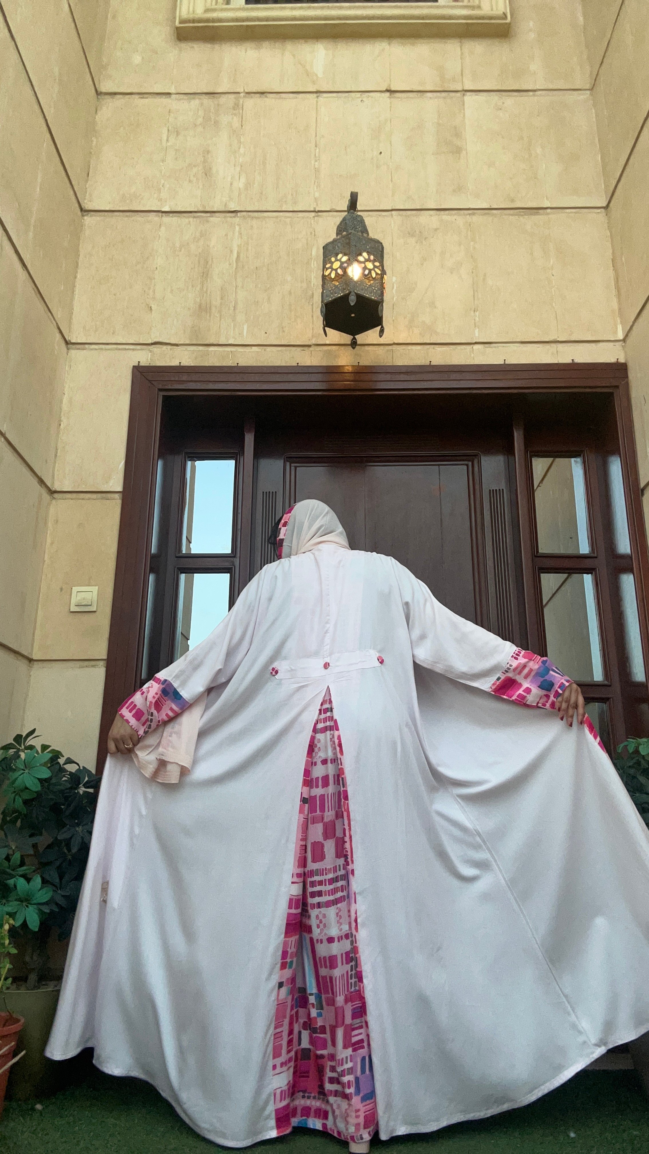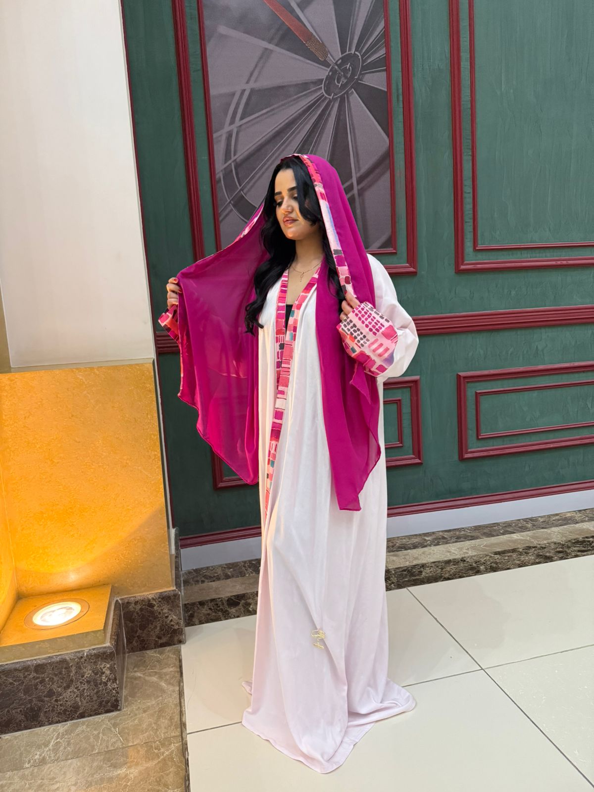 عبايه فسكوز تتميز بقماش قطني بيبي زهري فاتح مع فيسكوز طبيعي في الخلف والأكمام، لتجمع بين الراحة والأناقة في الصيف. تصميم موديل بوكس يمنح حرية حركة مثالية، مع إمكانية إضافة الطقطق حسب الرغبة.
